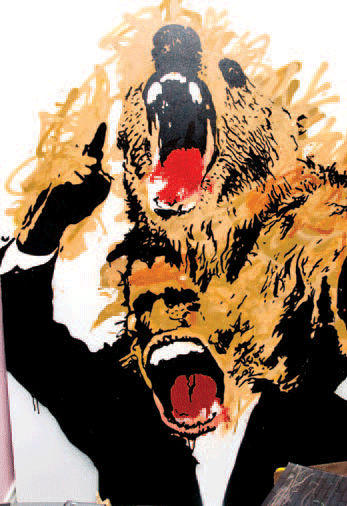 “My work is about chance, risk and not being afraid to push the limits of all types of artistic mediums,” Leighton confided to visitors on his Web site. The painter’s favorite aspect of his work is the process itself. “What I love most about what I do is transferring it from my mind to canvas,” he said.