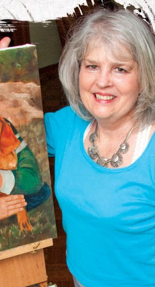 It is also inexpensive. Laughing she stated, “You can’t lose too much if you mess up. I get gratification from it and can easily spend eight to 16 hours on it if it is a complicated drawing.” When drawing people, Mary tries to capture the inner being or the essence of a person. When drawing situations, she finds the life in the scene and brings it forth for viewers, who can enjoy her artwork via her Web site where she displays her drawings and paintings. Once she did a portrait of one of her nieces who was killed. It was such a tragic and sad time that she wanted to give her family something to bless them. “I was pretty happy with the painting,” she said, “but it was really hard to do, because I didn’t have the person there anymore, but I did have certain memories.” Another painting of a scene Mary wanted to capture was when her daughter-in-law, Courtney, was holding nearly 2-year-old Blythe on her shoulders standing in front of Mary’s crape myrtle. “I just wanted to give her something with a particular verse to bless her. I wanted to express love to her. It was just the outline of the two of them, and I call it primitive. I didn’t do anything with shading. After I developed my personal style, I wanted the photo back to redo it, but Courtney loves it the way it is.” Although Mary’s style is realistic, she very much wants to give impressionism a try. “I have pictures that flip through my mind that I want to paint. I heard an expression when I was in Canada — ‘running through fields of mercy’ — and every time I think of that saying, pictures I want to paint pop into my head.”