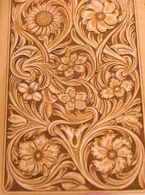 Getting reacclimated with the art, he felt much like a student learning all over again. Dave quickly learned his old self-taught techniques, in some instances, needed fine-tuning. “I had developed some pretty bad habits, actually, so I relearned how to do things properly,” he admitted. He took classes, looked for challenging projects to complete and played with materials to evolve his skills. His meager beginnings were a thing of the past, as his projects turned from wallets and checkbooks to saddles and figure carvings, which is an image on leather stretched from behind to achieve a 3-D appearance.